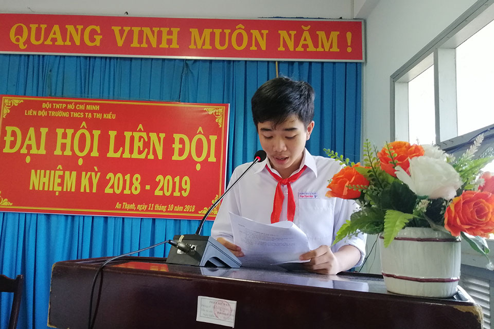 Chiều 11/10/2018, trường THCS An Thạnh đã tiến hành Đại hội Liên đội nhiệm kỳ 2018-2019. Đại hội đã nhất trí với Báo cáo tổng kết hoạt động của Liên đội nhiệm kỳ 2017-2018 và nhất trí cao với bản Dự thảo phương hướng hoạt động Đội nhiệm kỳ 2018-2019. Sau đây là một số hình ảnh của Đại hội.