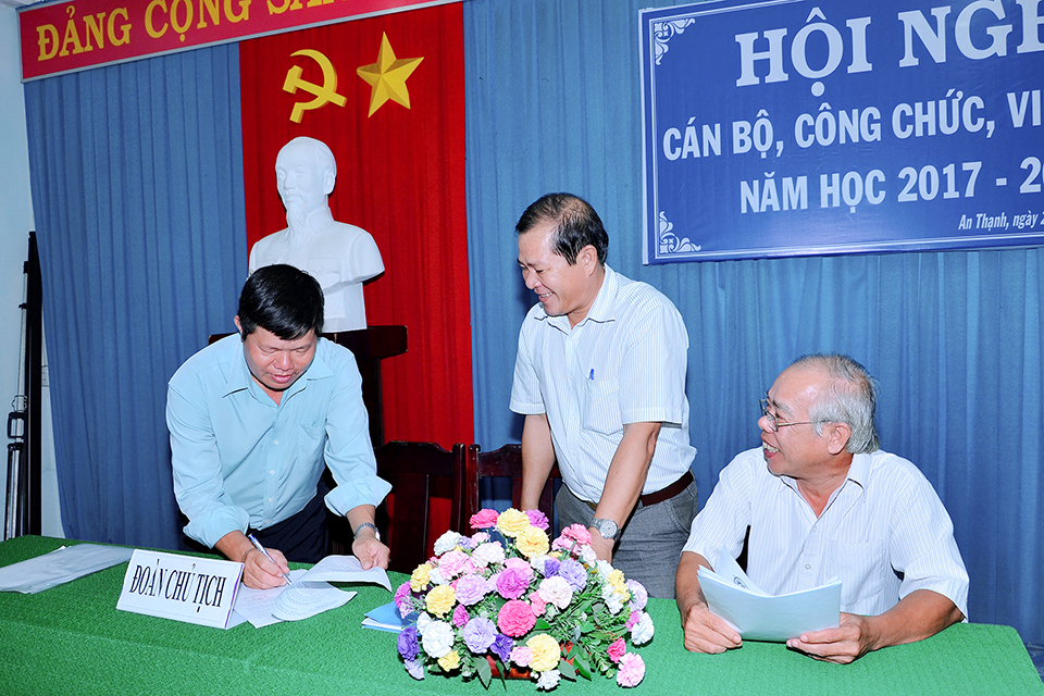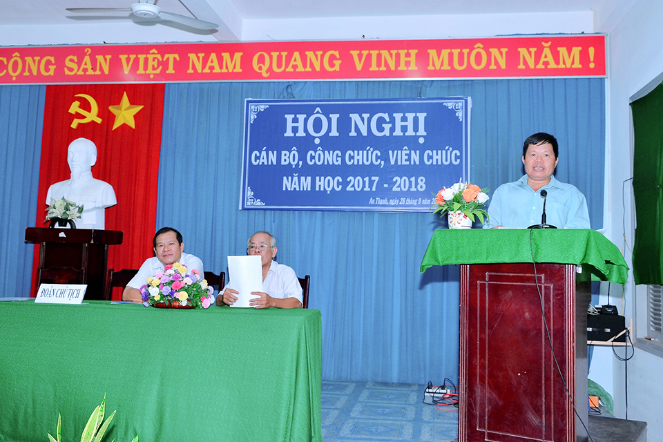 Hoạt động Giáo dục Hội nghị cán bộ công chức năm học 2017-2018 ATH 9 năm trước Ngày 28 tháng 9 năm 2017, trường THCS An Thạnh đã long trọng tổ chức “Hội nghị cán bộ công chức năm học 2017-2018”. Hội nghị đã diễn ra trong không khí nghiêm túc, trang trọng và thành công tốt đẹp. Sau đây là một số hình ảnh của Hội nghị. Related posts Hội nghị Cán bộ Công chức năm học 2019-2020 ATH 7 năm ago Lễ Tổng kết năm học 2018-2019 ATH 7 năm ago Lễ Khai giảng năm học 2013-2014 ATH 13 năm ago