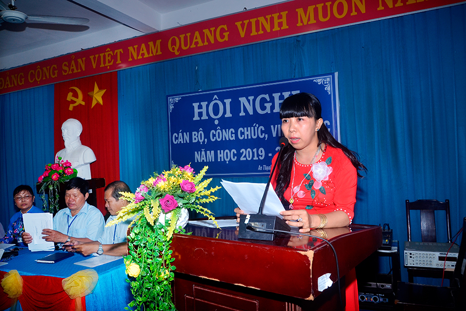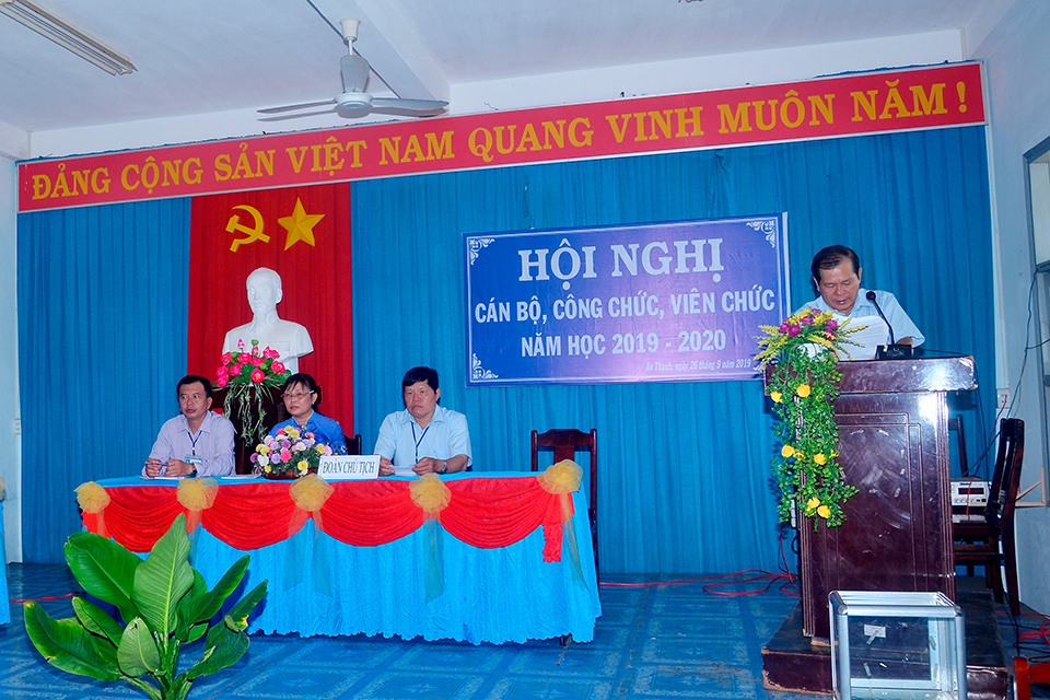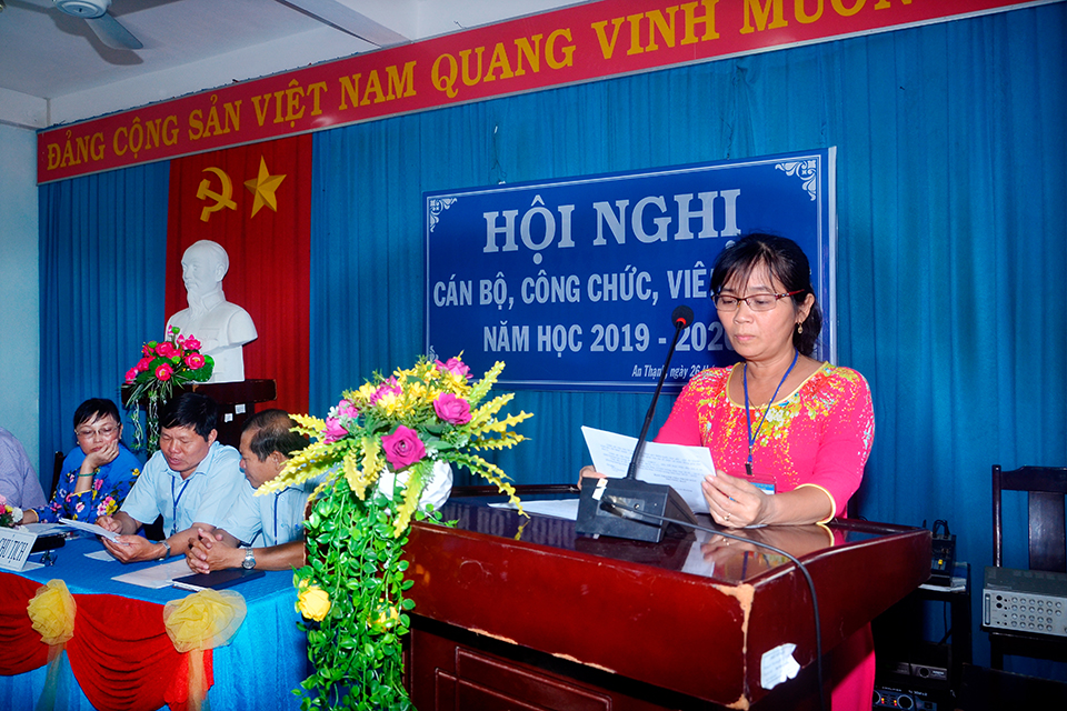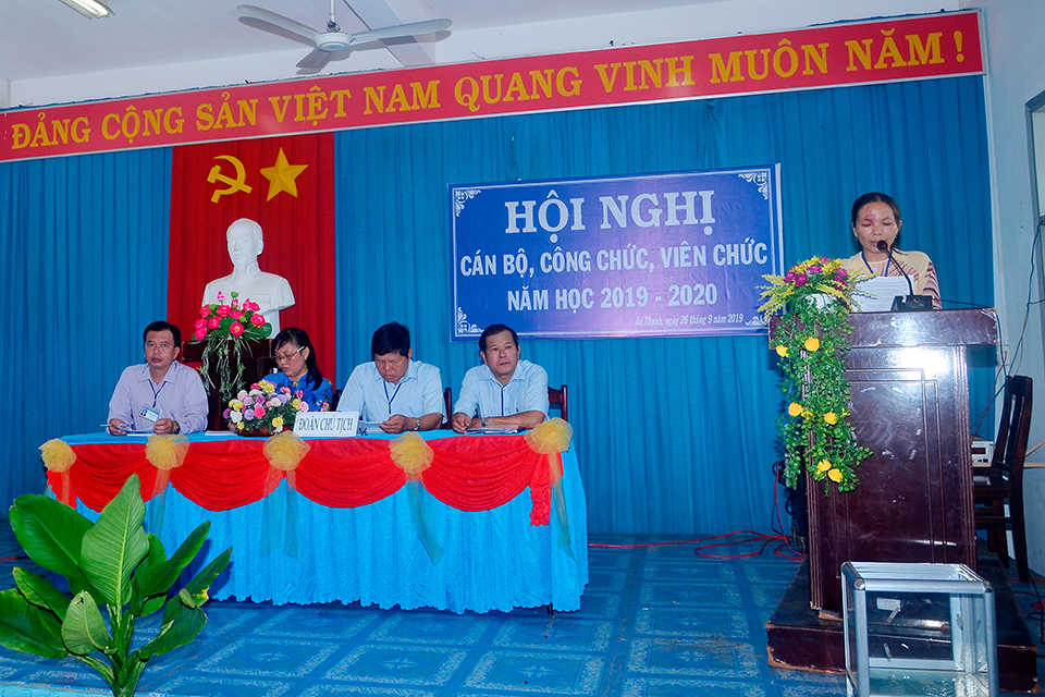 Hoạt động Giáo dục Hội nghị Cán bộ Công chức năm học 2019-2020 ATH 7 năm trước Chiều 26/9/2019, tại Hội trường trường THCS An Thạnh đã long trọng tổ chức Hội nghị Cán bộ Công chức năm học 2019-2020. Sau đây là một số hình ảnh của Hội nghị. Related posts Hội nghị Cán bộ Công chức năm học 2014-2015 ATH 12 năm ago Mừng ngày nhà giáo Việt Nam 20/11/2017 ATH 8 năm ago Học sinh THCS, THPT được giảm 2 tuần học trong năm học 2020-2021 ATH 6 năm ago