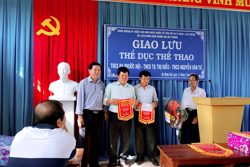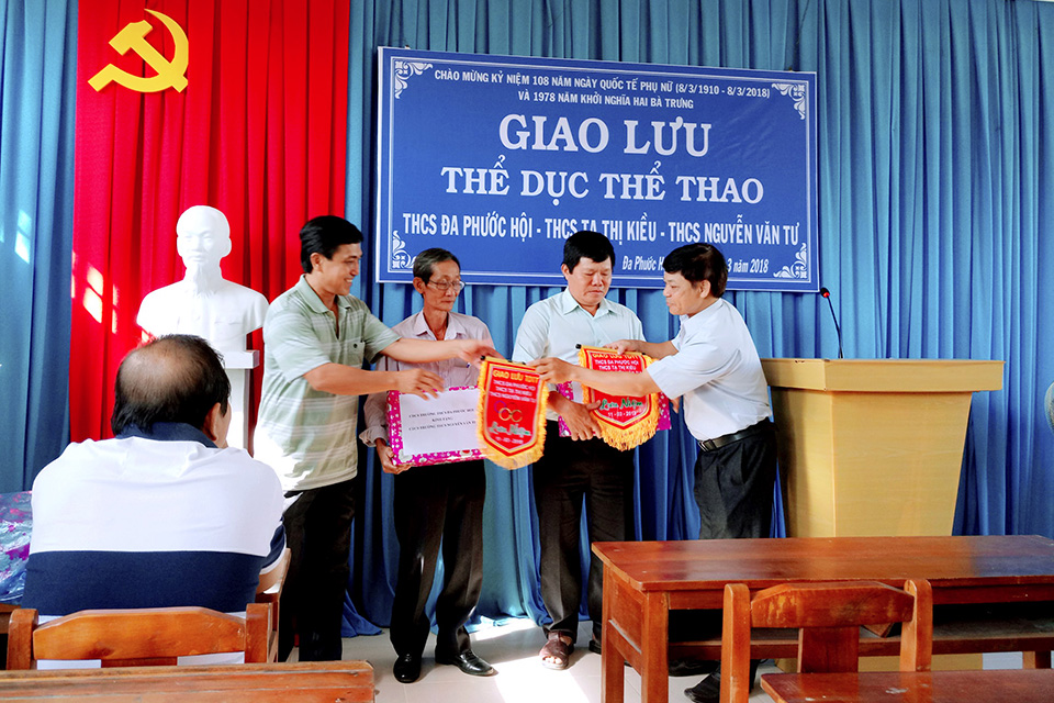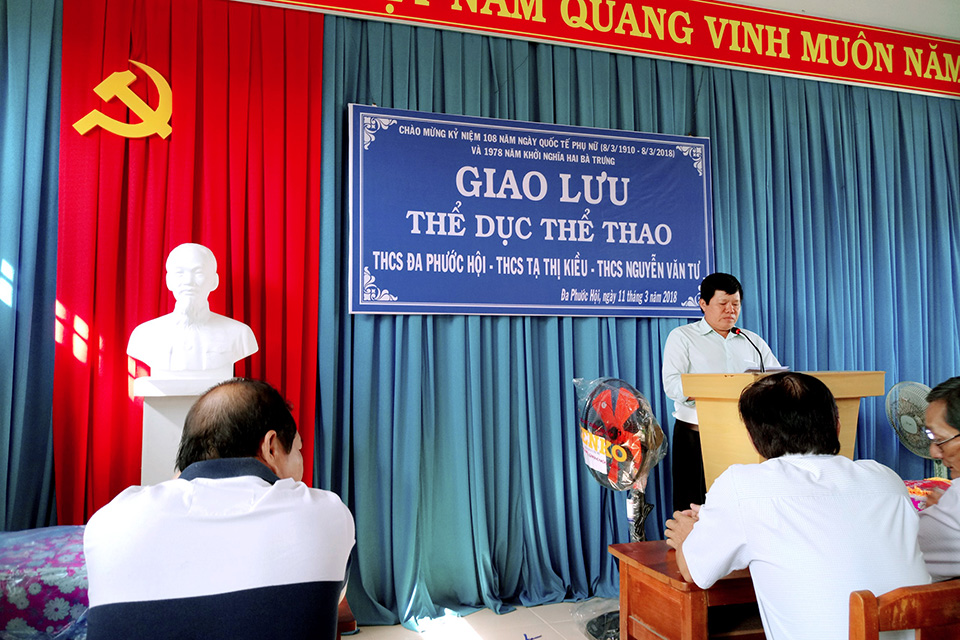 Sáng 11/3/2018, tại trường THCS Đa Phước Hội đã diễn ra buổi họp mặt giao lưu thể dục thể thao chào mừng kỷ niệm 108 năm ngày Quốc tế Phụ nữ (08/3/1910 – 08/3/2018) và 1978 năm Khởi nghĩa Hai Bà Trưng với sự tham gia của 3 trường THCS Đa Phước Hội, THCS An Thạnh và THCS Nguyễn Văn Tư. Trong buổi họp mặt này, đại diện BGH và Công đoàn của 3 trường đã trao nhau những món quà lưu niệm cũng như cùng trao đổi và chia sẻ những kinh nghiệm trong công tác chuyên môn và các hoạt động đoàn thể. Đến trưa cùng ngày buổi họp mặt giao lưu đã diễn ra thành công tốt đẹp. Sau đây là một số hình ảnh của buổi họp mặt này.