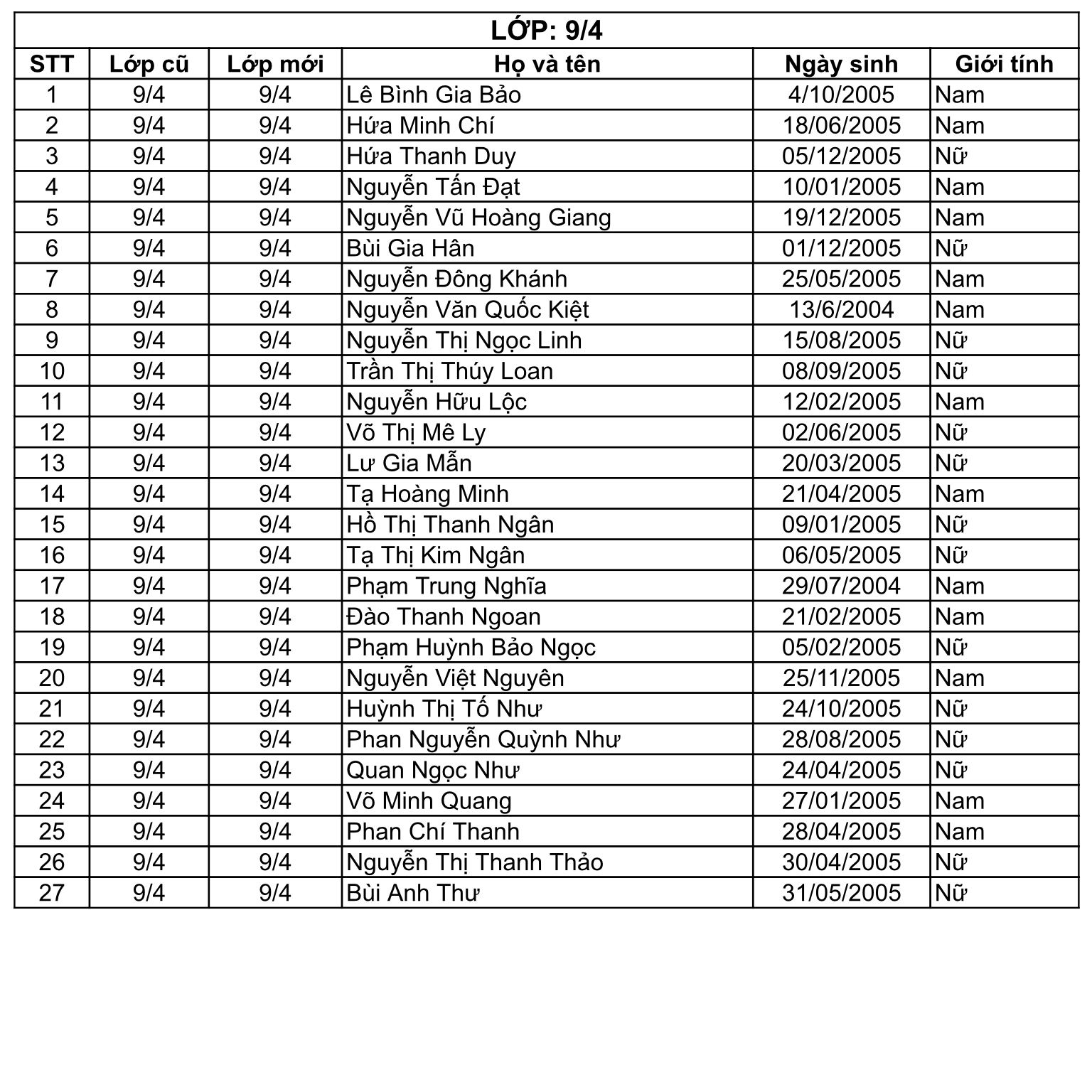 Danh sách học sinh lớp 9 (Thực hiện từ ngày 04/5/2020)