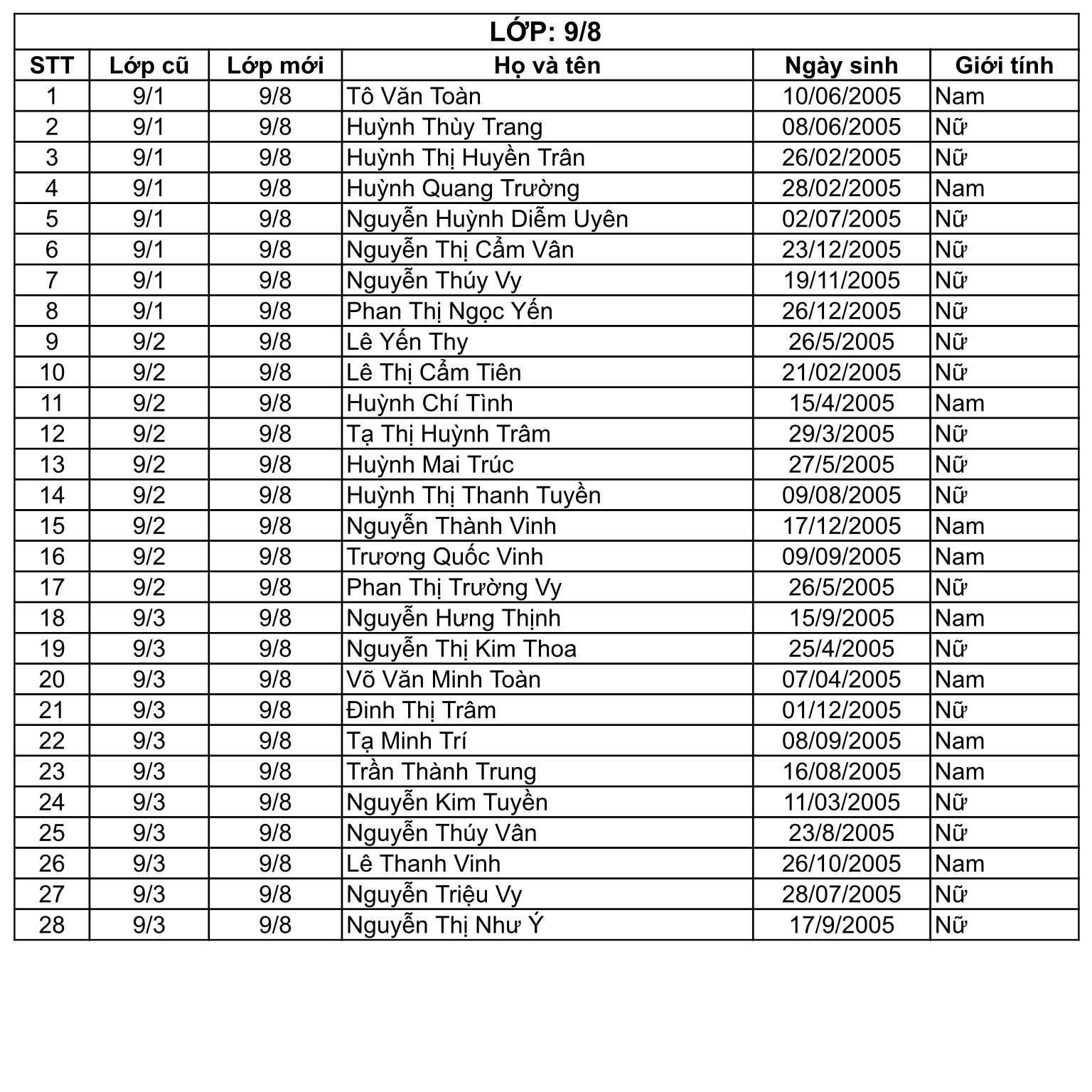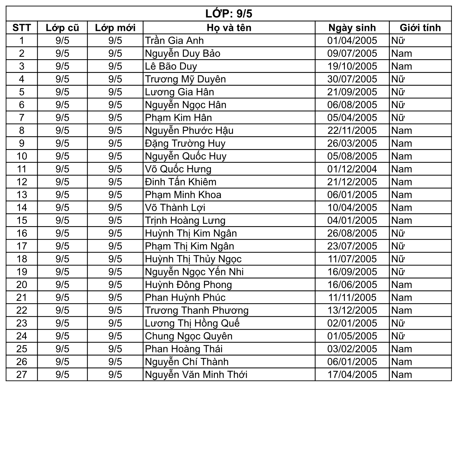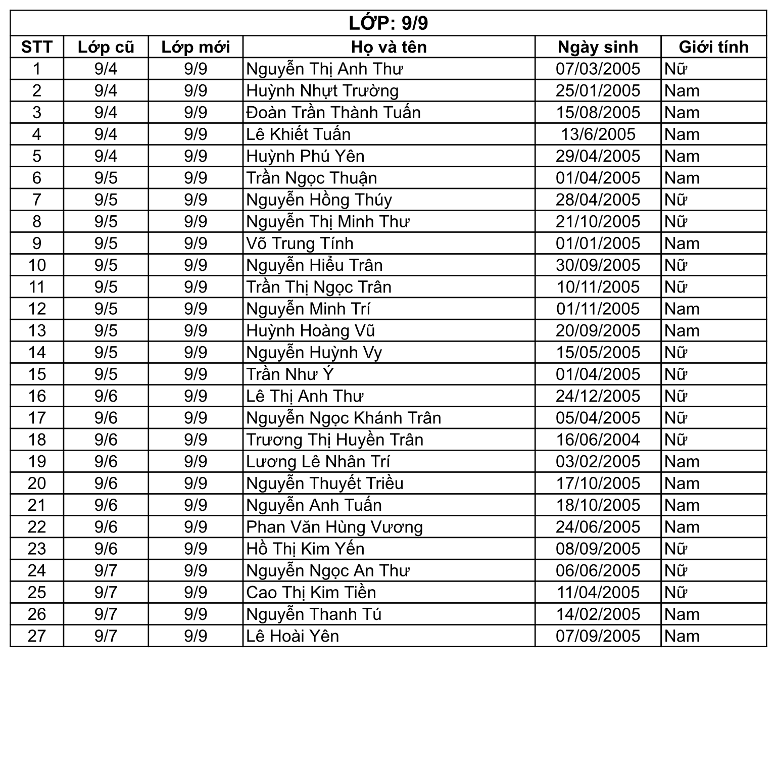 Trang chủ > Thông tin > Thông báo mới > Danh sách học sinh lớp 9 (Thực hiện từ ngày 04/5/2020)