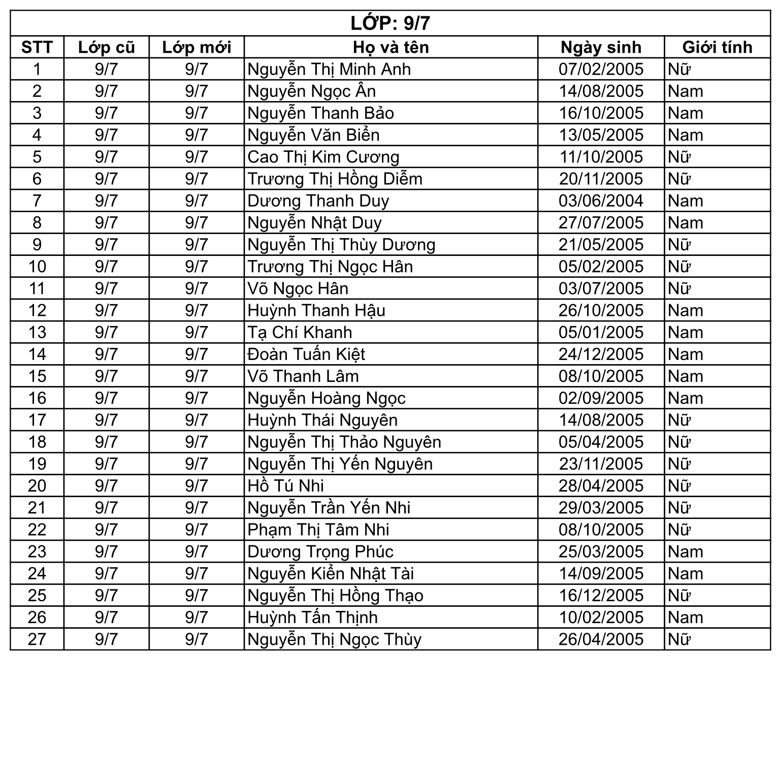 Danh sách học sinh lớp 7 (Thực hiện từ ngày 04/5/2020)