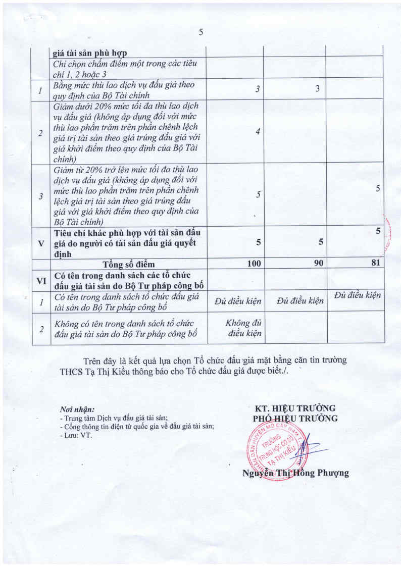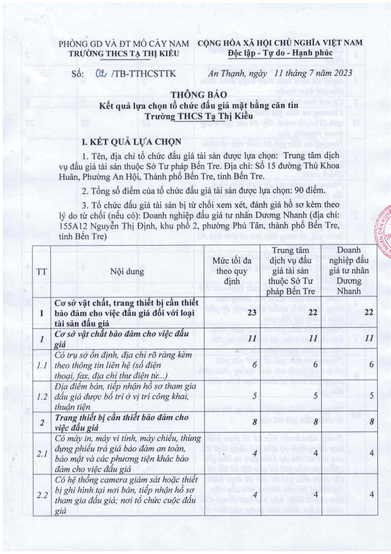 Thông báo kết quả lựa chọn tổ chức đấu giá mặt bằng căn tin Trường THCS An Thạnh